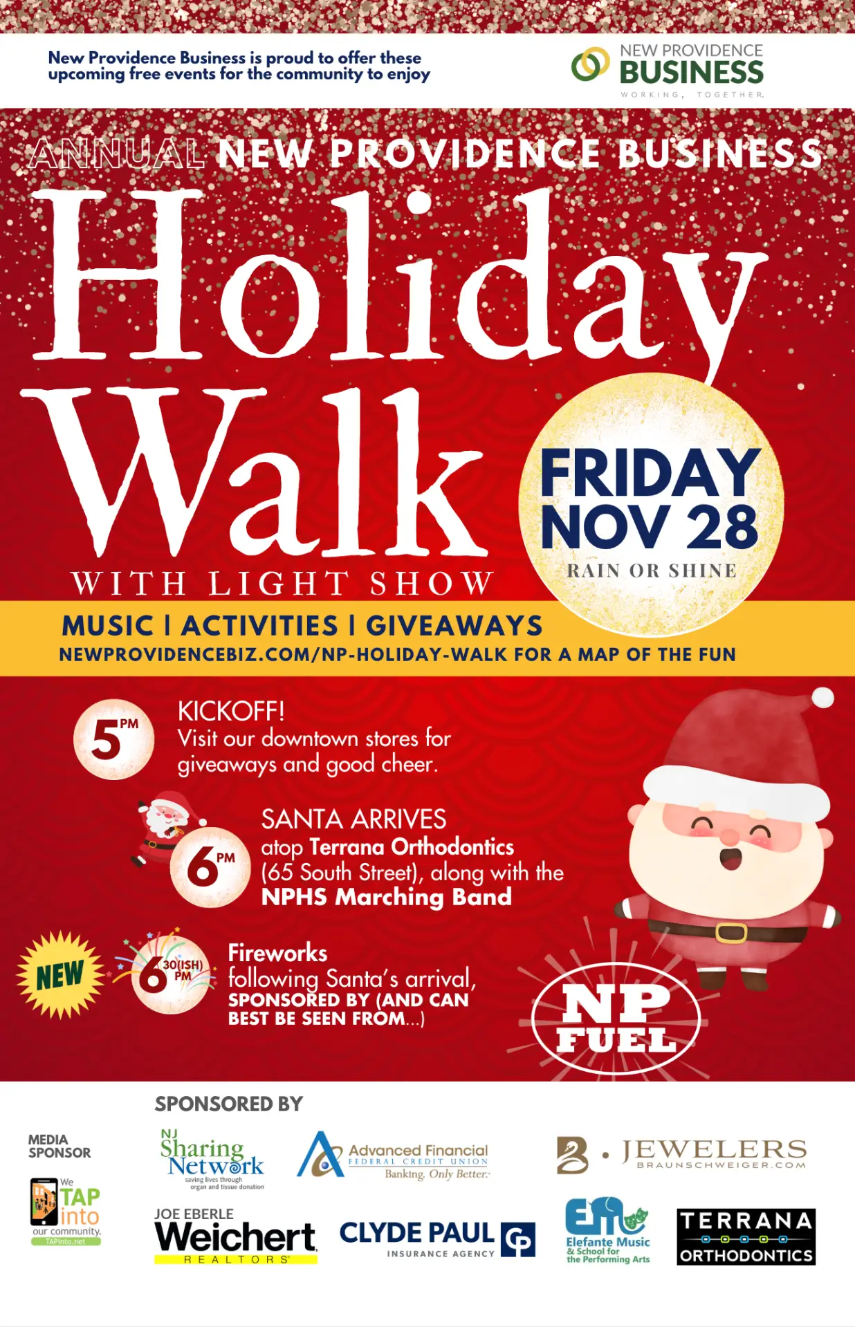 Mark your calendars as New Providence’s annual Holiday Walk returns on Friday, November 28th, for an evening of family fun!