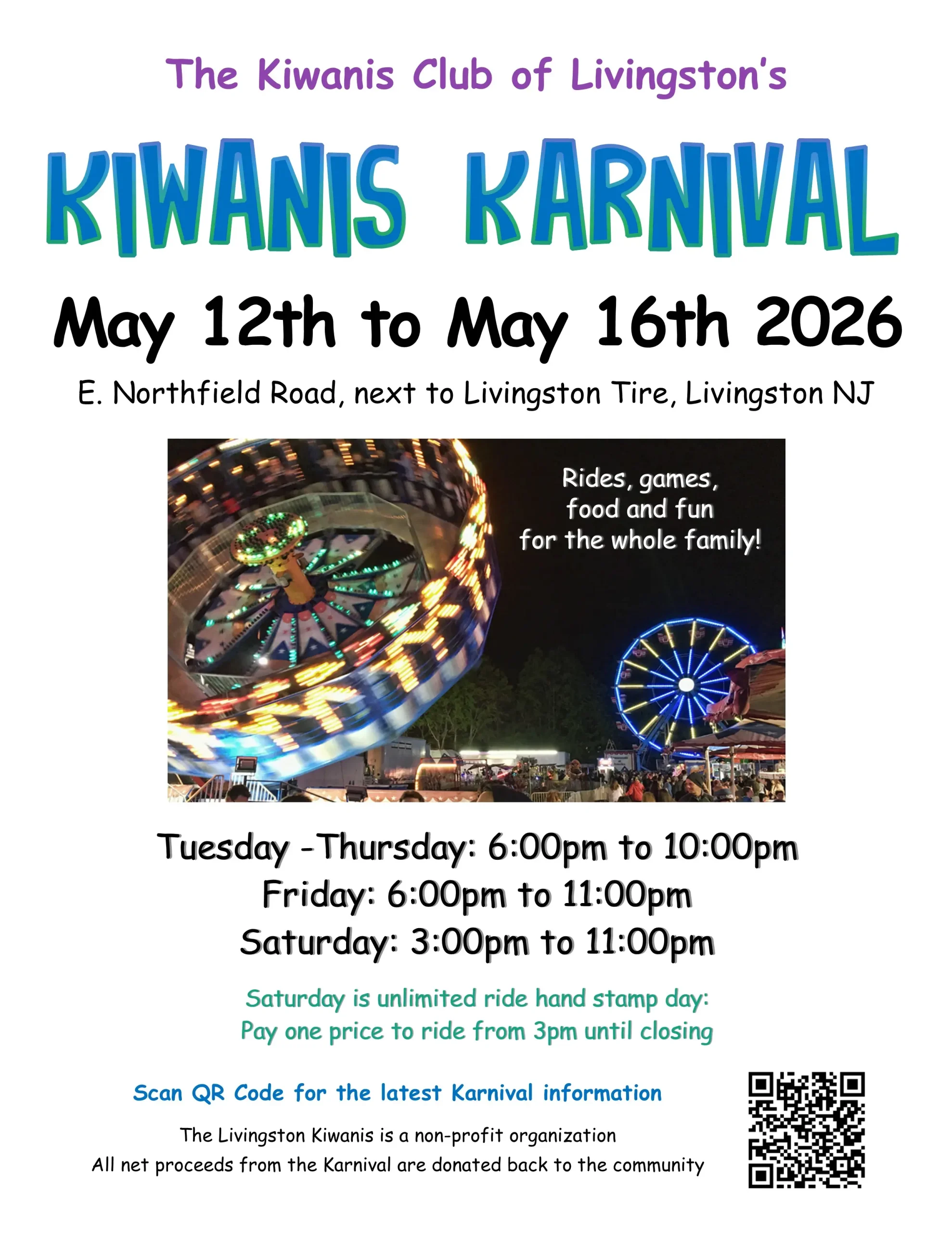The Kiwanis Club of Livingston will host their 2026 Kiwanis Karnival from Tuesday, May 12th through Saturday, May 16th, 2026.