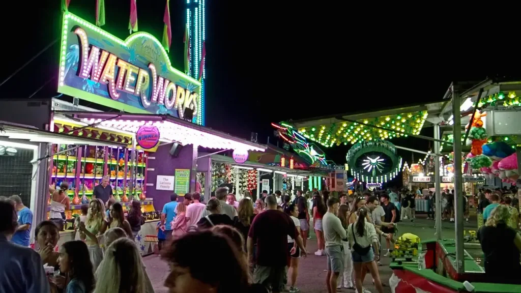 Admission is free. Parking is available at the high school, but it seems to fill up quickly (especially on fireworks night!) There’s plenty of street parking adjacent to the fair however.